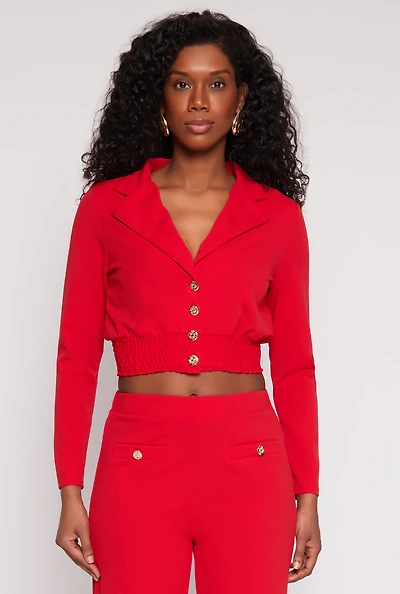 Womens Smocked Button Front Blouse, Red, Size M