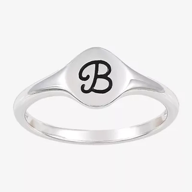 Sparkle Allure Womens Pure Silver Over Brass Round Signet Ring