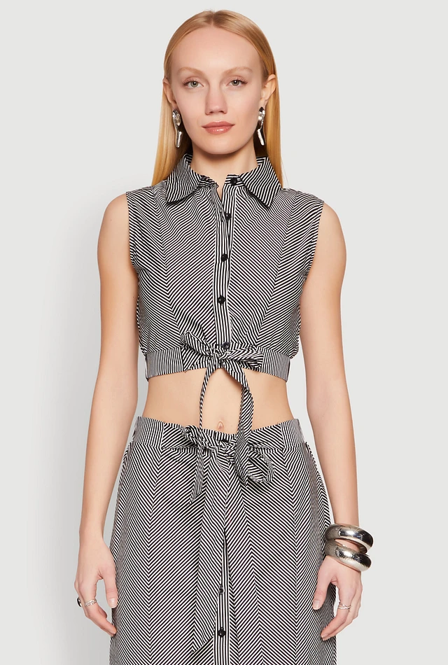 Pinstripe Double Tie Front Crop Top