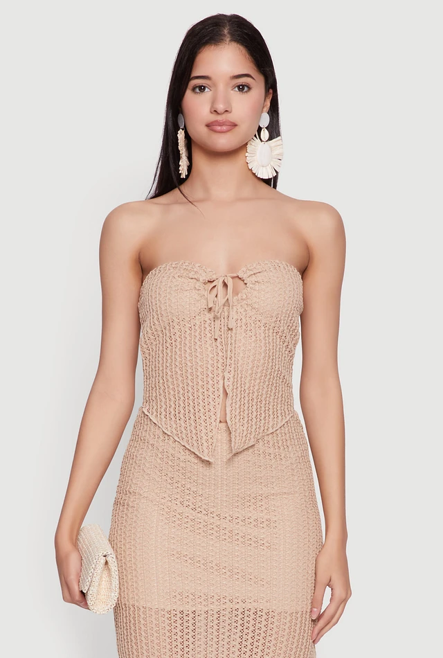 Textured Knit Tie Front Cardigan with Tube Top