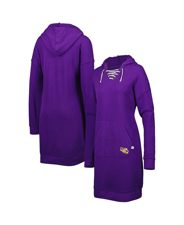 Women's Touch Purple Lsu Tigers Quick Pass Lace-Up V-Neck Hoodie Dress