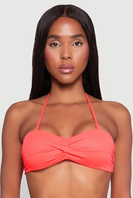 Womens Twist Front Bandeau Bikini Top, Orange, Size L
