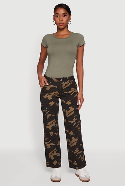 Womens VIP Mid Rise Straight Leg Camouflage Cargo Pants,