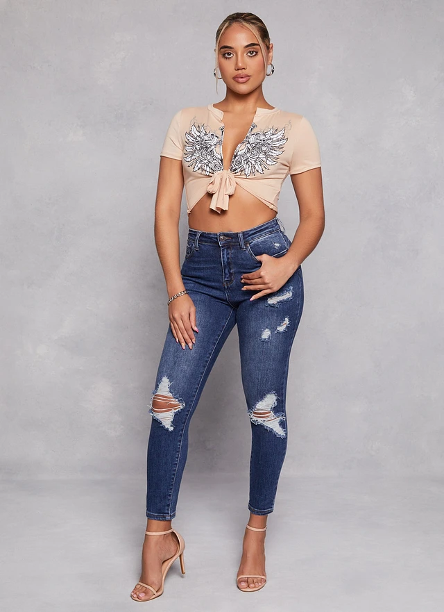 Womens WAX Distressed High Waist Skinny Jeans, Blue, Size 0