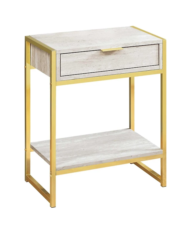 Wood and Metal End Table with Storage Drawer Shelf – Industrial Style