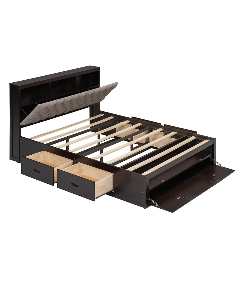 Wood Queen Platform Bed with Storage Headboard, shoe rack and 4 drawers
