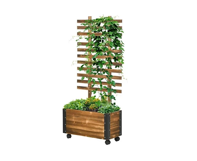Wooden Raised Garden Bed Planter with Trellis and Wheels for Easy Mobility