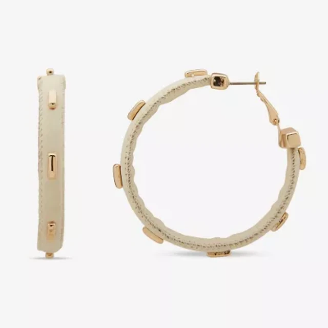 Worthington Gold Tone & White Womens 22.9mm Hoop Earrings