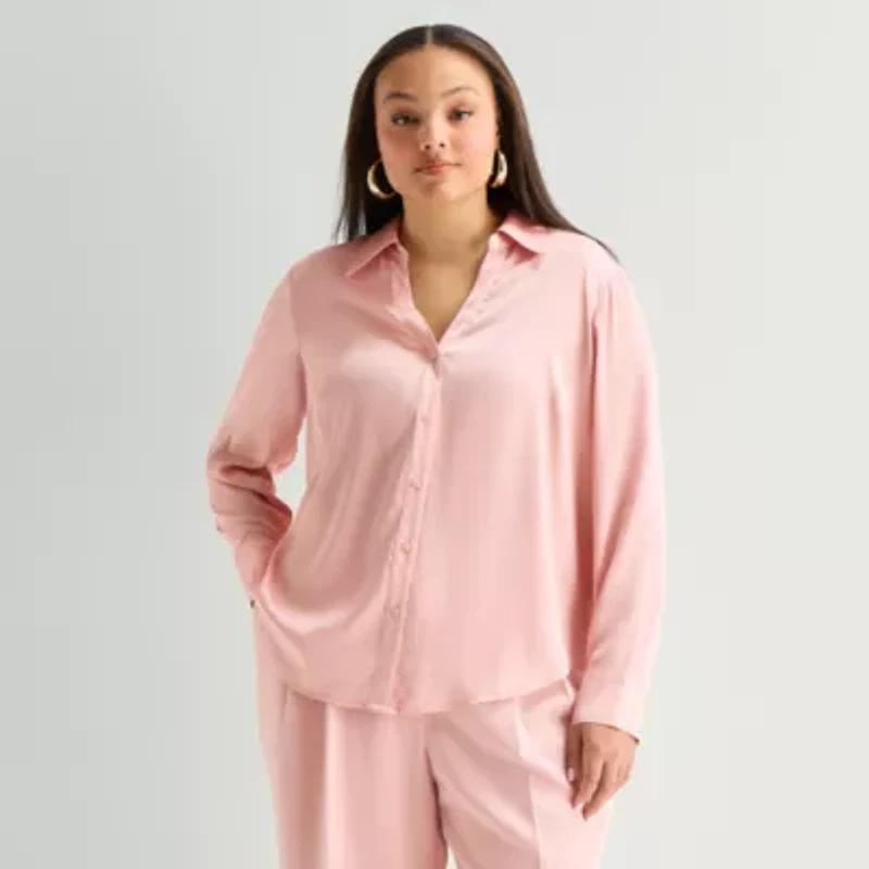 Worthington Plus Womens Long Sleeve Slim Fit Blouse