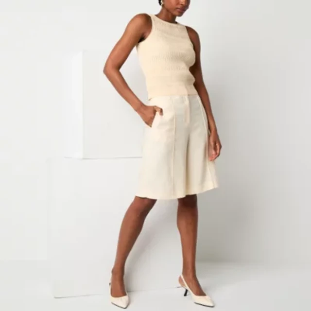 Avec Les Filles Women's Tailored Mid Rise Bermuda Shorts