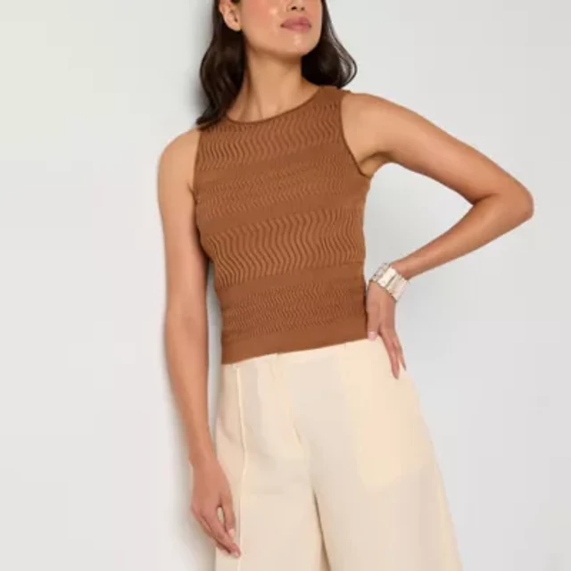 Worthington Womens Boat Neck Sleeveless Pullover Sweater