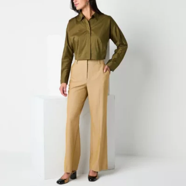 Worthington Womens Straight Neck Long Sleeve Blouse