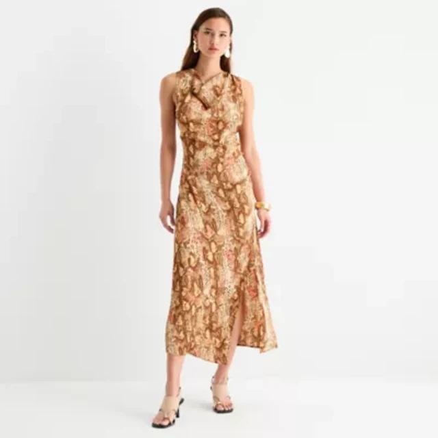 Worthington Womens Sleeveless Geometric Midi Maxi Dress