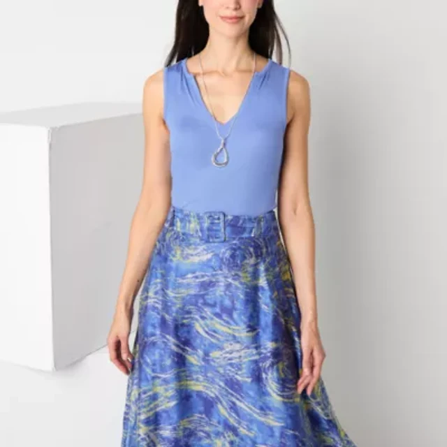 Worthington Womens Split Crew Neck Sleeveless Tank Top