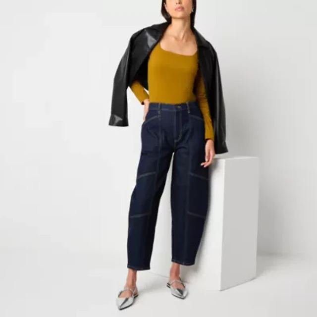 Worthington Womens Straight Neck Long Sleeve Blouse