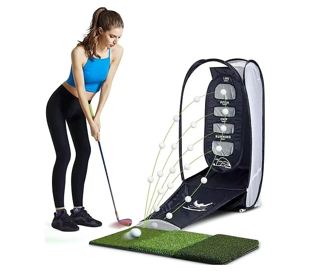 Wosofe Golf Practice Net Swing Hitting Training Aids Tri-Turf Mat Multi-Functional Home Backyard Chipping Gift Men Women Indoor Outdoor