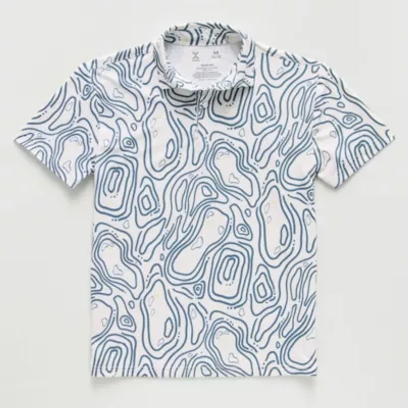 This Xersion little and big boy's polo shirt features a bright geometric print to help him stand out on his active day. This stylish short-sleeve top has a collar neck with button closures. Wear it with shorts and sneakers.