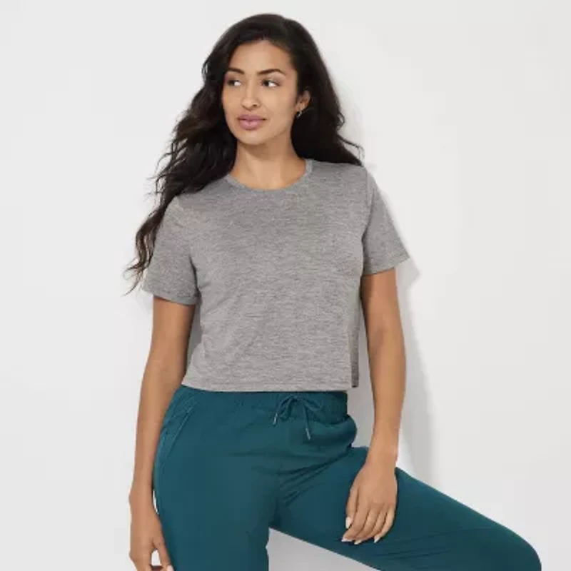 Whether for workouts, lounging, or pairing with your favorite casual pieces, this Xersion women's t-shirt is a must-have for your wardrobe. The regular-fit style is made from quick-drying stretch jersey and has a crew neckline and short sleeves. Team it with pull-on pants and sneakers for a laid-back look.