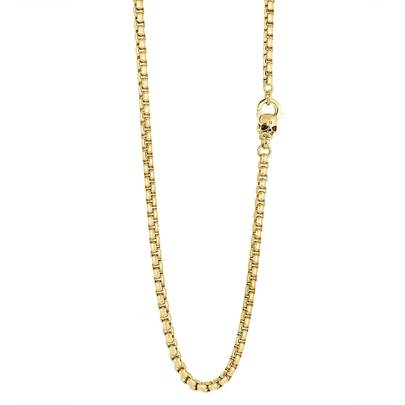 - Yellow Gold Ip Stainless Steel Shiny Round Box Skull Clasp Chain