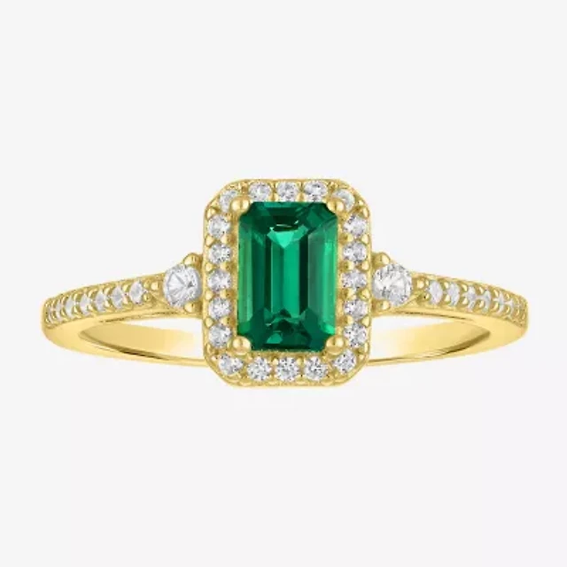 Yes, Please! Womens Lab Created Green Emerald 14K Gold Over Silver Halo Side Stone Cocktail Ring