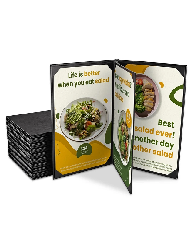 Yescom 8.5"x14" Menu Covers 10 Packs 4 View Leather Book Style Black Faux Custom Logo Cafe Restaurant Bars
