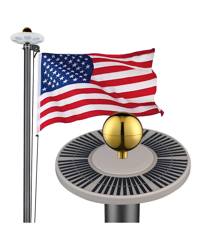 Yescom Bravery 20Ft Sectional 13Gauge Aluminum Flag Pole Kit with 136 Led Solar Light Us Flag Top Outside House Outdoor