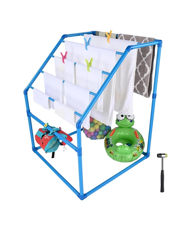 Yescom Free Standing Pool Side Pvc Towel Rack Holder Heavy Duty 7 Bar for Outdoor Floats Dryer Clothes Drying Laundry Storage Organizer