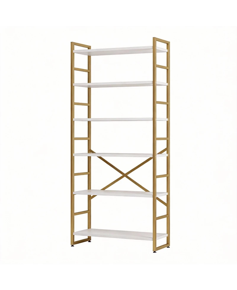 5 Tier Storage Shelf: This tall unit gives you five open levels for books, photos, small plants or everyday items. The panels resist water and light scratches. Strong metal frame meets thick particleboard boards an X-shaped back brace and locking strap stop wobble so each shelf can support 55 lb. Clean industrial lines fit living room, office or balcony. All hardware and a clear manual are included for fast 15-minute assembly wipe clean when needed. Weight: 0.05 pounds. Length: 11.80 inch. Width: 23.60 inch. Height: 61.80 inch.
