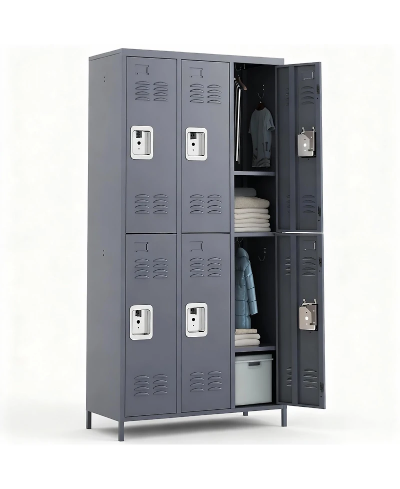 Yigii Large 72" Steel Locker with 6 Doors for Gym, Office, or School- Spacious, Durable, Easy Assembly