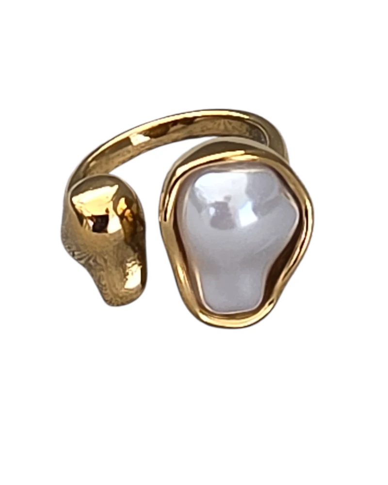 Bold 316 stainless steel ring featuring a lustrous pearl centerpiece. Hypoallergenic construction makes it ideal for sensitive skin, ensuring comfort for all-day wear. The durable stainless steel resists tarnishing and corrosion, maintaining its shine through daily activities. Perfect for those seeking a timeless piece that combines elegance with practicality.