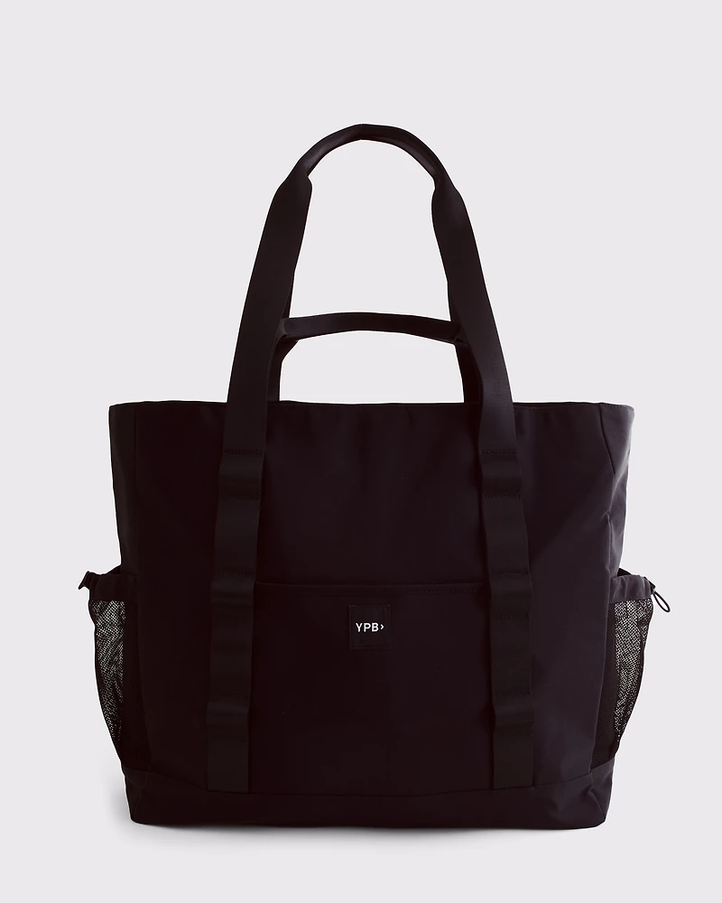 Our active tote bag with interior and exterior pockets throughout to hold your personal items and valuables. Includes top zipper closure, as well as a back trolley pass flap for easy use when traveling. Height: 15 in. Width: 5.5 in. Length: 18 in.