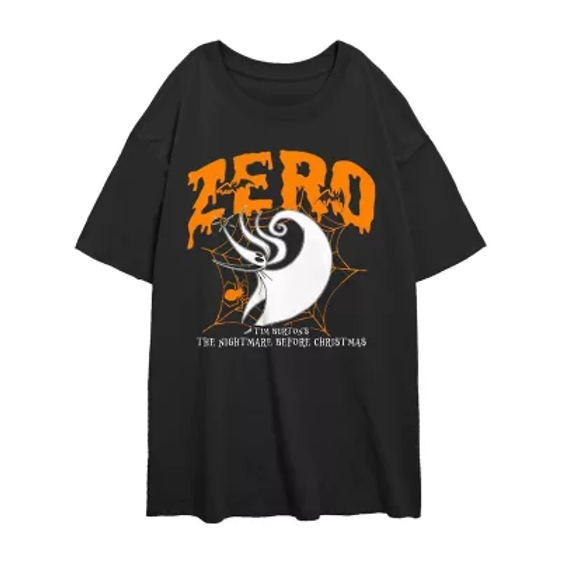 Zero Womens Juniors Crew Neck Short Sleeve Oversized Nightmare Before Christmas Graphic T-Shirt