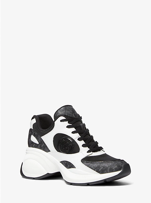 Zuma Color-Block Leather and Knit Trainer
