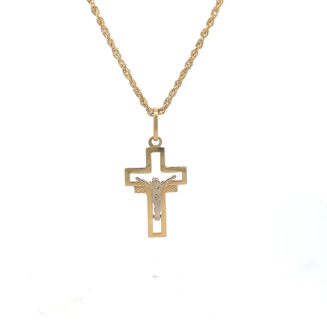 Cross with Christ Two Tone Crucifix 25MM Pendant