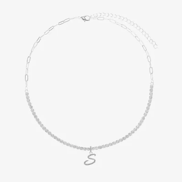 Sparkle Allure Initial Womens Cubic Zirconia Pure Silver Over Brass 16 Inch Tennis Necklace