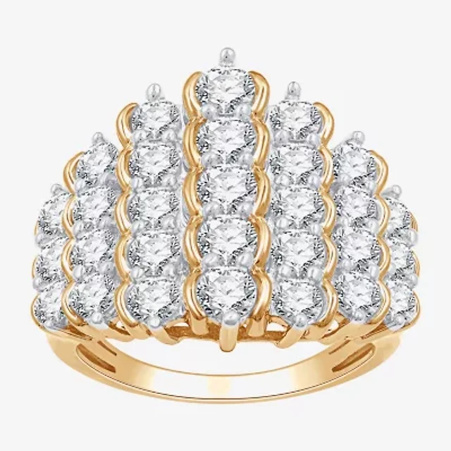 Diamond Blossom (I, I2) Womens 2 CT. T.W. Lab Grown White 14K Gold Over Silver Cluster Cocktail Ring