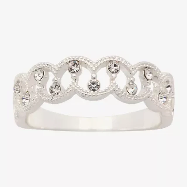 Sparkle Allure Womens 2.5MM Crystal Pure Silver Over Brass Crossover Band