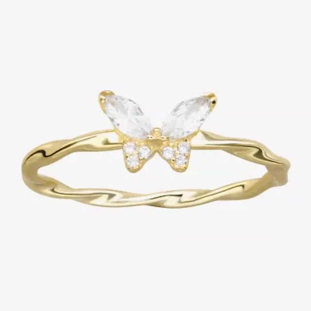 Silver Treasures Womens White Cubic Zirconia Sterling Butterfly Delicate Stackable Ring
