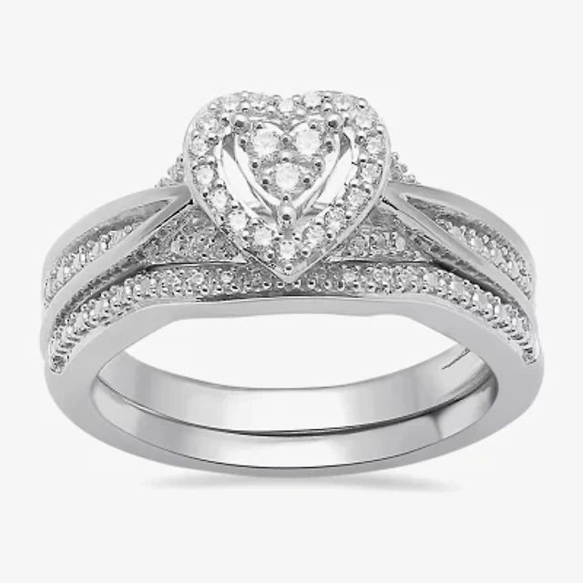 Surrounded by Love Womens 1/5 CT. Natural White Diamond Sterling Silver Heart Side Stone Halo Bridal Set