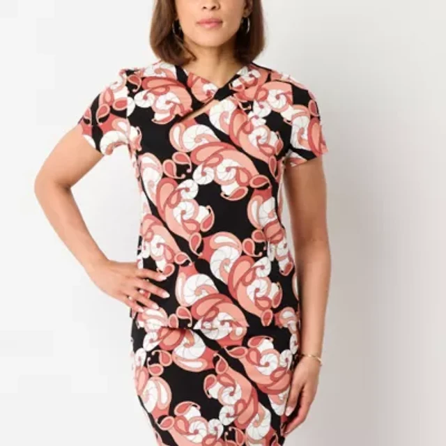 Liz Claiborne Womens Round Neck Short Sleeve Blouse