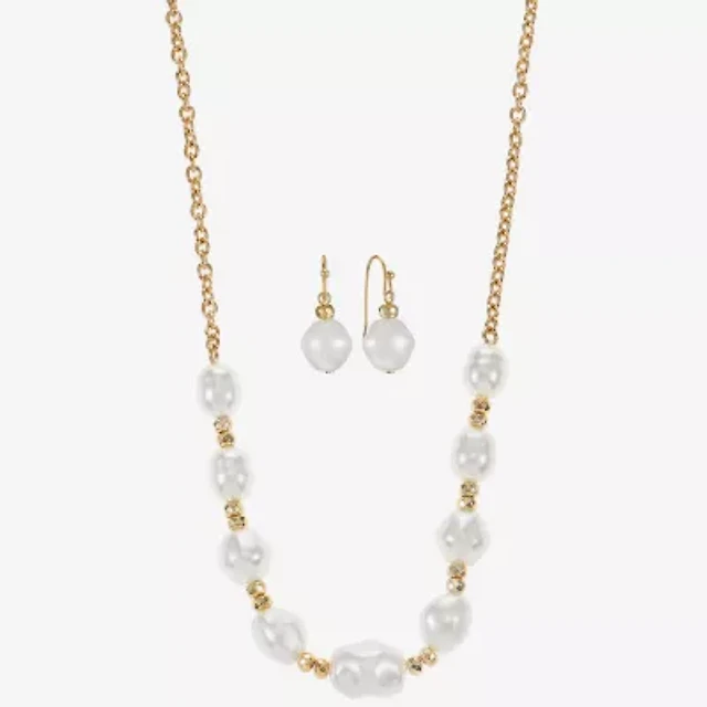 Monet Jewelry Gold Tone Pendant Necklace & Stud Earring Womens Red Glass Simulated Pearl Oval 2-pc. Jewelry Set