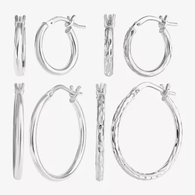 Womens White Cubic Zirconia Sterling Silver 6 Pair Earring Set