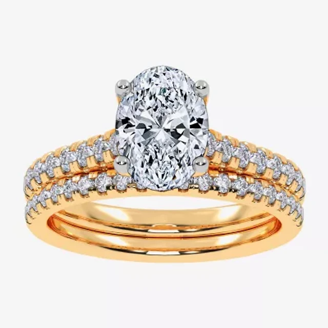 (H-I / Si2-I1) Womens 1 1/2 CT. T.W. Lab Grown White Diamond 10K or 14K Gold Oval Side Stone Bridal Set