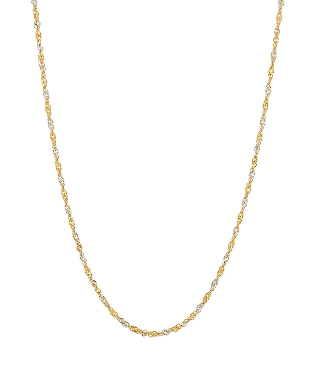 Polished Two-Tone Diamond Cut 16" Singapore Chain in 10K Yellow Gold