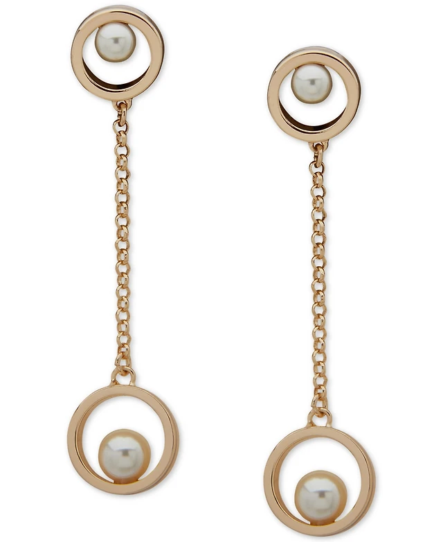 Karl Lagerfeld Paris Gold-Tone Imitation Pearl & Chain Circle Drop Earrings