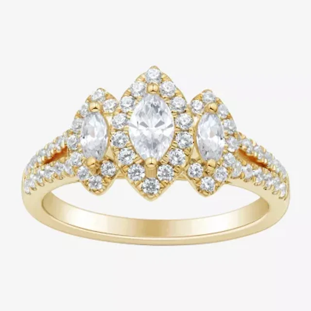 Love Lives Forever Womens 1 1/2 CT. T.W. White Diamond 10K Gold Round Side Stone 3-Stone Engagement Ring