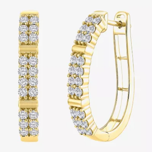 Womens 1/2 CT. T.W. Natural White Diamond 10K Gold 18.6mm Hoop Earrings