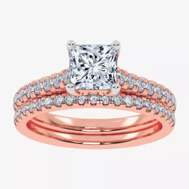 (H-I / SI1-SI2) Signature By Modern Bride Womens 5 CT. T.W. Lab Grown White Diamond 14K Gold Princess Bridal Set