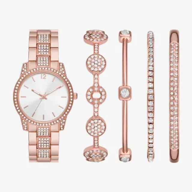 Ladies Sets Womens Crystal Accent Rose Goldtone 6-pc. Watch Boxed Set Fmdjset313