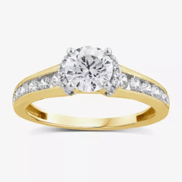 Signature By Modern Bride (F / Vs2) Womens 2 CT. T.W. Lab Grown White Diamond 10K Gold Side Stone Engagement Ring
